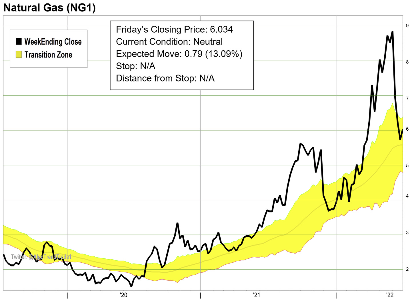 Natural Gas moved higher last week, but is inside the yellow channel Transition Zone (TZ) and remains in a Neutral condition. There is no trade this week in Natural Gas.
