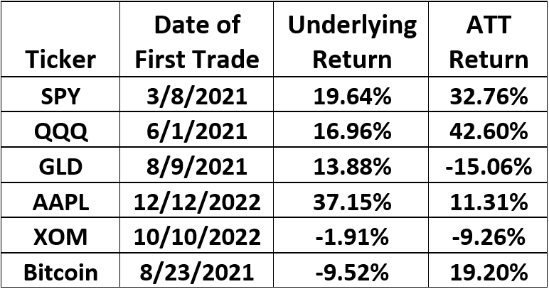 The updated historical results for the tickers we follow in AlgoTrendTraders are listed underneath the charts. They’re currently showing the trades with closing prices through December 10th.