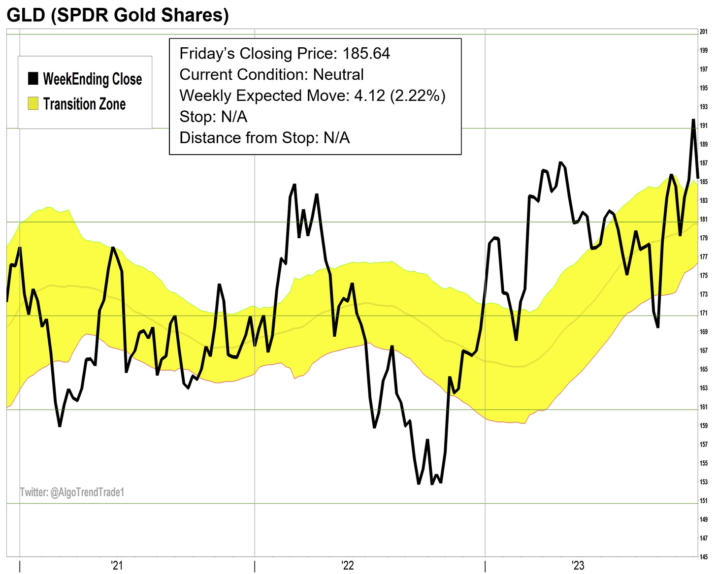 In last week’s newsletter, the first headline said that all six of the then-current trades were profitable. That was a mistake. GLD began moving lower and ended the week hitting its exit strategy. The loss in the trade wasn’t that large, less than -1%, but it was frustrating after having been higher at the end of last week.