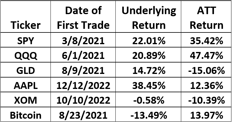 The updated historical results for the tickers we follow in AlgoTrendTraders are listed underneath the charts. They’re currently showing the trades with closing prices through December 17th.