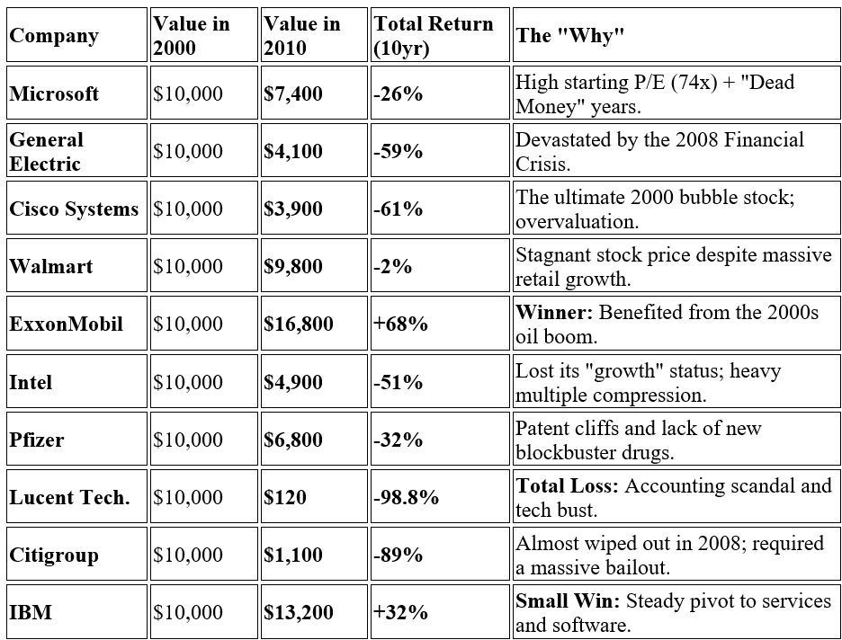 In March 2000, the top 10 companies looked invincible. Ten years later, most investors in those companies were crushed. The market you see today - with AI darlings trading at stratospheric valuations - won’t be the same market ten years from now. It never is.