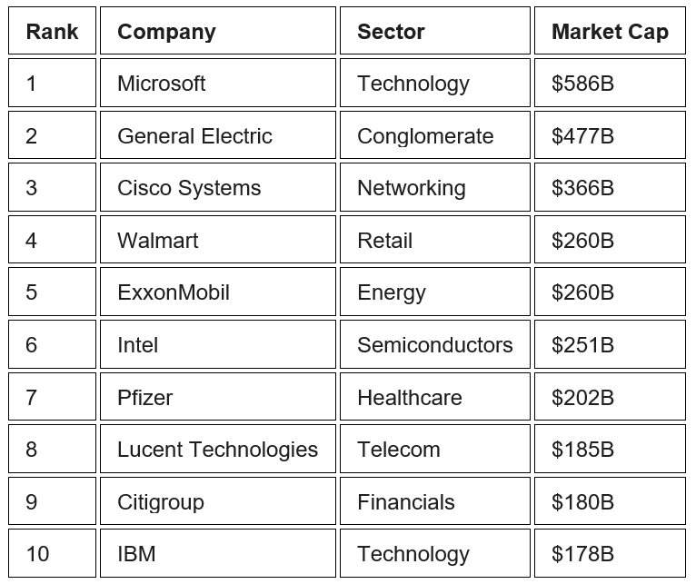 Top 10 S&P 500 Companies by Market Cap (March 2000)