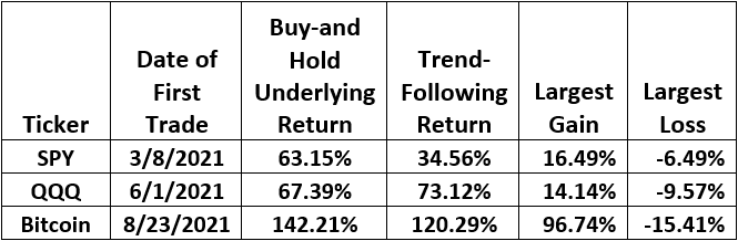 The system is based on the weekly closes of the underlying tickers. All trading information and volatility calculations are based on weekly volatility. By using weekly calculations, the system ignores the day-to-day noise in the markets and is able to give better signals.