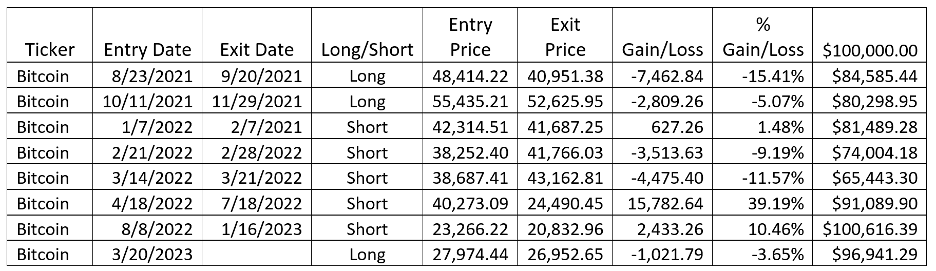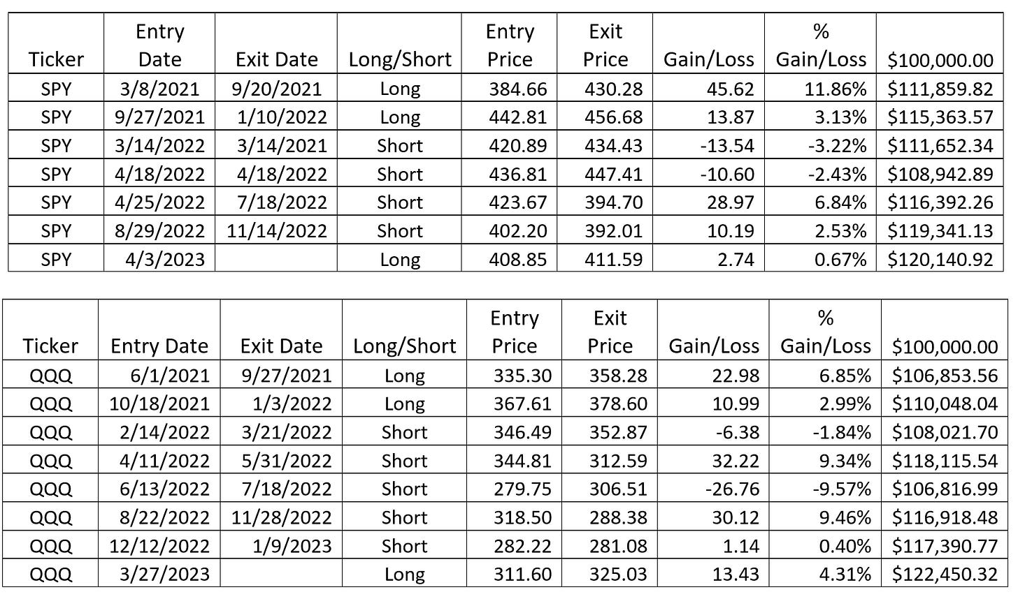 The updated historical results for the tickers we follow in the AlgoTrendTraders are now going to be listed underneath the charts. They’ll be updated with the current prices until active trades are settled. Overall, you’ll see that the ATT system has performed well. We began publishing on Substack in 2021. At that time, we were in the middle of a bull market and, of course, we had the bear market in 2022.
