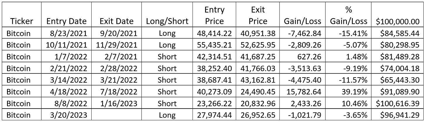 The updated historical results for the tickers we follow in the AlgoTrendTraders are listed underneath the charts. They’re currently showing closing prices through May 12th. I’ll update them this week. Overall, you’ll see that the ATT system has performed well. We began publishing on Substack in 2021 and before that in the UK and Australia.