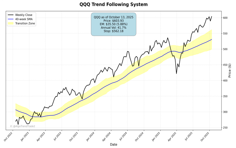 🔒 Profit Cushions Expand: Stops move higher on all bullish trades, locking in gains. SPY and QQQ both holding comfortable double-digit profits with improving stop distances.