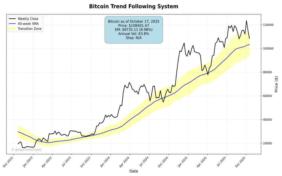 ₿ Bitcoin Watching: Price at $108,401.47 but remains in transition zone. No current trade after last week’s stop-out. Monitoring for next signal.