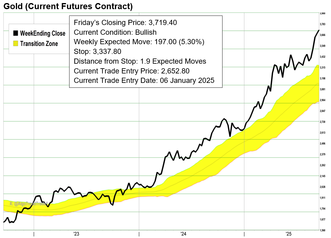 π₯ Gold's Stellar Performance: Another new all-time high pushes current profit to over 40% since January entry. Distance from stop widens to 1.9 Expected Moves.