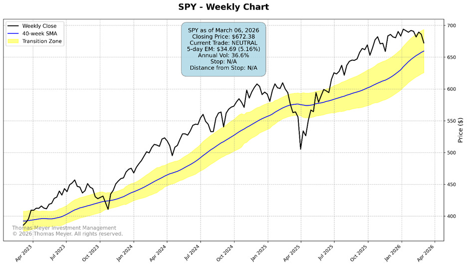 We don’t try to predict the market’s next move. Instead, we measure what’s actually happening each week and follow the evidence. Our algorithms determine the current trend and calculate exit strategies based on each security’s normal volatility.